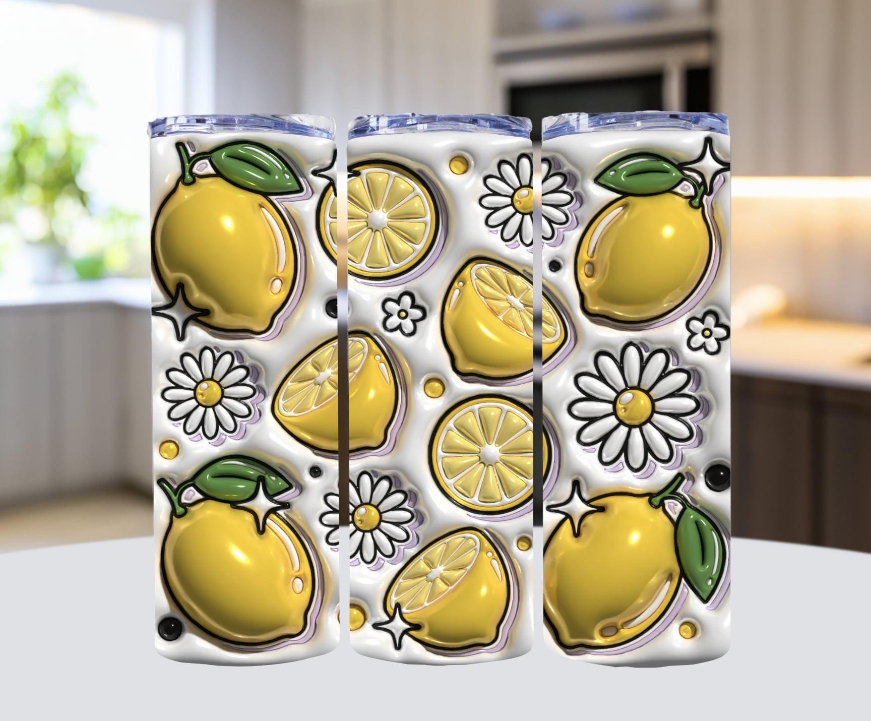 Summer Lemon Tumbler 20 oz Straight Skinny Stainless Steel Tumbler/Travel Mug with reusable plastic straw.